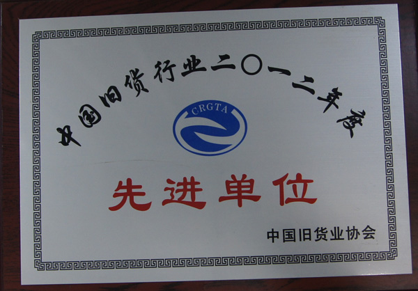 •  證書(shū)名稱(chēng):中國舊貨行業(yè)2012年度先進(jìn)單位